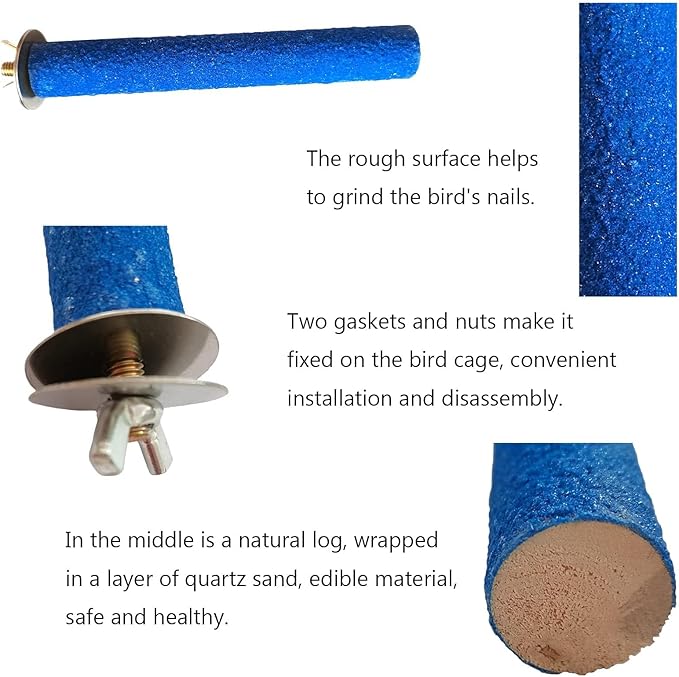 - 【Wide Use】The bird perches is suitable for parrotlets, parakeets, cockatiels, lovebirds budgies, finches, canaries, green cheeked conures and similarly sized birds. Please check the size before making a purchase in case the item is not fit your birdcage and your pet.Frosted bird poles add decoration to the cage and keep the birds from getting bored.Meet their daily needs