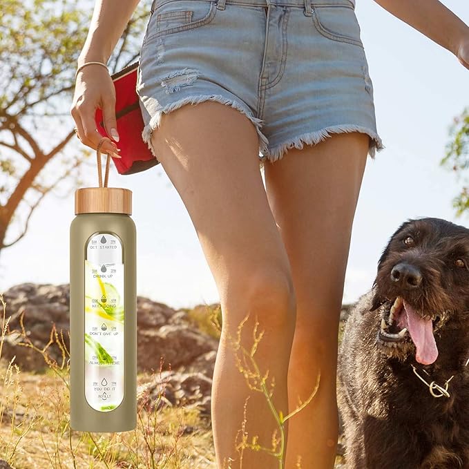 - Your Ultimate Hydration Partner: Our clear glass drinking bottle are made of borosilicate glass, which is dishwasher safe, leak proof, BPA, BPS, PVC, lead, and cadmium free. These durable and aesthetic reusable glass time water bottles will not crack under extreme temperature and pressure