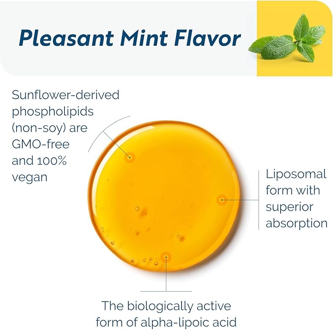 - Peppermint Flavor - Each serving contains 1500mg of liquid Vitamin C and 70mg of R-Lipoic Acid in a natural, non-GMO, liposomal preparation.