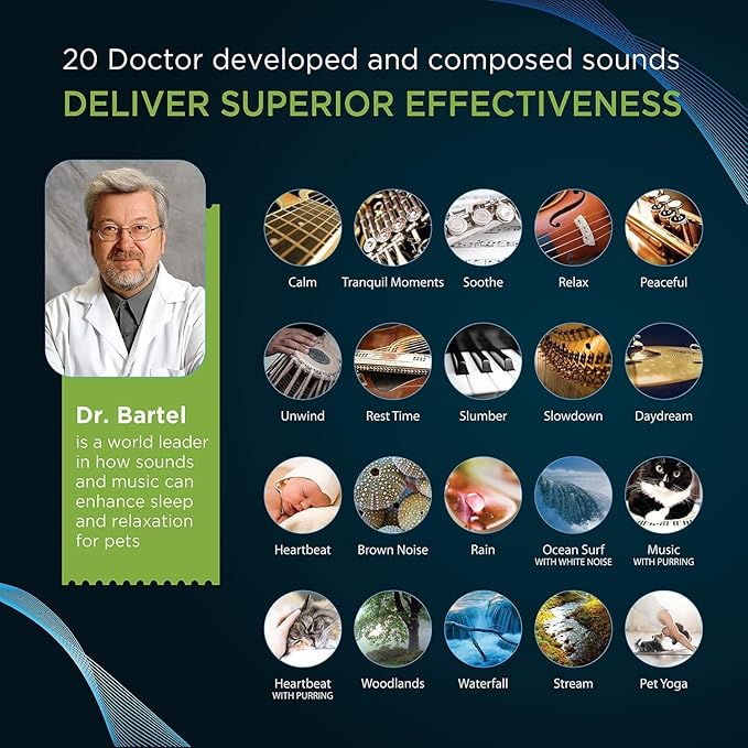 - DOCTOR DEVELOPED SOUNDS. Sound tracks are doctor composed and chosen with pets in mind leading to greater effectiveness.