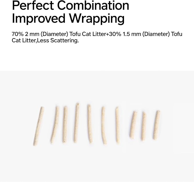 - 【Less Scattering, Improved Wrapping】70% 2 mm (Diameter) Tofu Cat Litter+30% 1.5 mm (Diameter) Tofu Cat Litter。Perfect Combination, Less Scattering, Improved Wrapping.