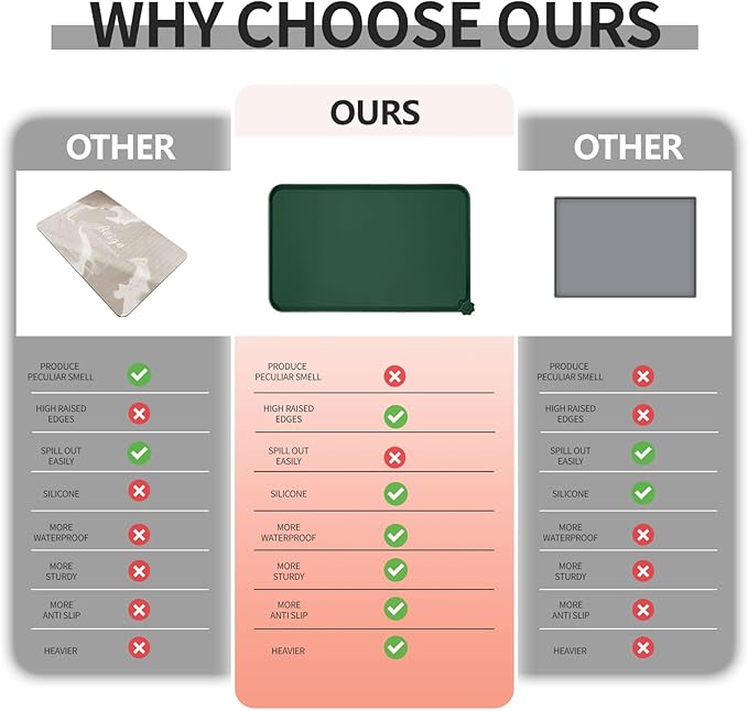 - Anti-slip design: our non-slip pet feeding mat ensures stability for your pet's bowl, preventing any water stains or spills on the floor. Enjoy peace of mind when feeding your pet, knowing that their food stays in place