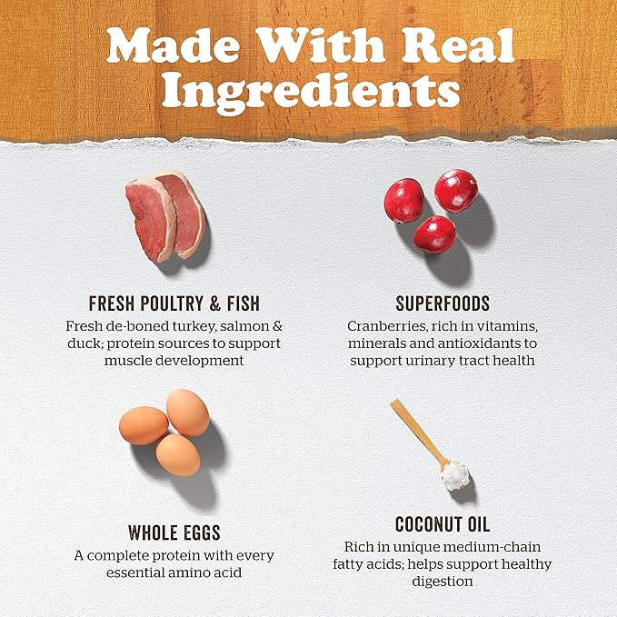 - 1st ingredient is Fresh Turkey: Made with fresh, de-boned turkey, salmon and duck, our formula provides highly digestible protein to help aging cats maintain muscle strength and mobility. Great as an indoor cat food!