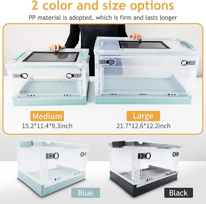 Travel Portable Foldable Terrarium Kits for Reptiles -Heat-Resistant Material, Easy to Move with Wheels, Includes Plant, Feeding Bowl, and Carpet for Snakes, Lizards, Tortoises, and Leopard