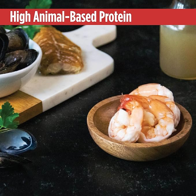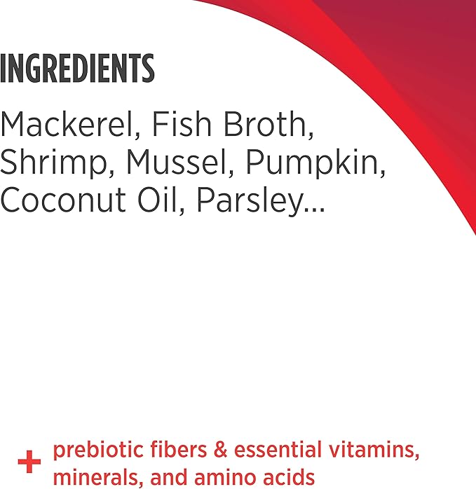 - PROTEIN-RICH - Delicious and savory with real shreds of wild-caught mackerel, shrimp, and mussel to help entice the pickiest eaters.