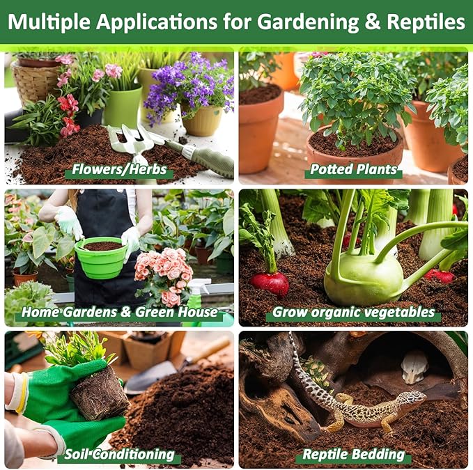 - Wide Application: Suitable for all gardening applications, potted plants, grow microgreens, container gardens, raised garden beds, indoor plants, flowers, vegetables, herbs; Also suitable for bedding of various reptiles, it worked great for making organic compust; Tips: When mixing with water to hydrate make sure to start out slowly so you achieve the consistency you want