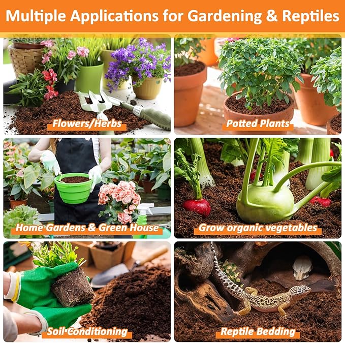 - Wide Application: Suitable for all gardening applications, potted plants, grow microgreens, container gardens, raised garden beds, indoor plants, flowers, vegetables, herbs; Also suitable for bedding of various reptiles, it worked great for making organic compust; Tips: When mixing with water to hydrate make sure to start out slowly so you achieve the consistency you want