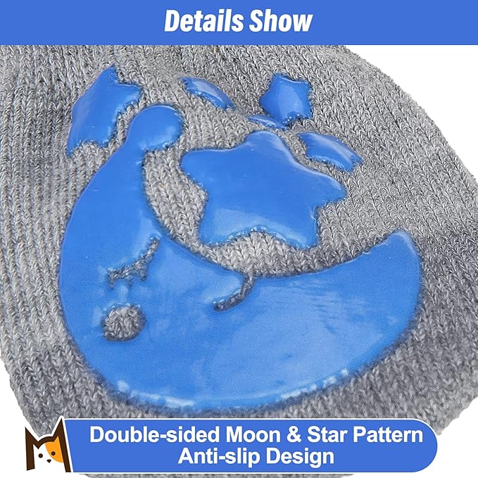 BEAUTYZOO Anti-Slip Dog Socks with Grips Traction Control for Small Medium Large Dogs, Non Skid Indoor Double Side Pet Paw Protector for Hardwood Floor Wear (Moon and Star, Small)