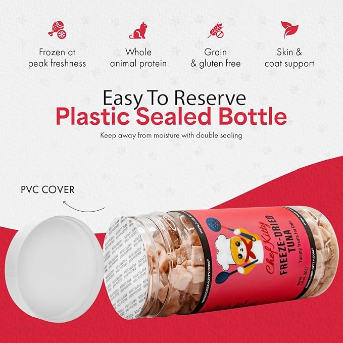 - Why Freeze Dried Tuna Treats? - Like people, animals crave natural sources of protein. Our freeze-drying process ensures each of our freeze dried treat tuna bites keeps the robust flavor and vital nutrients of fresh fish include single igredient, no additives and healthy, all-natural treat for cats and dogs – no hormones, preservatives, or fillers.