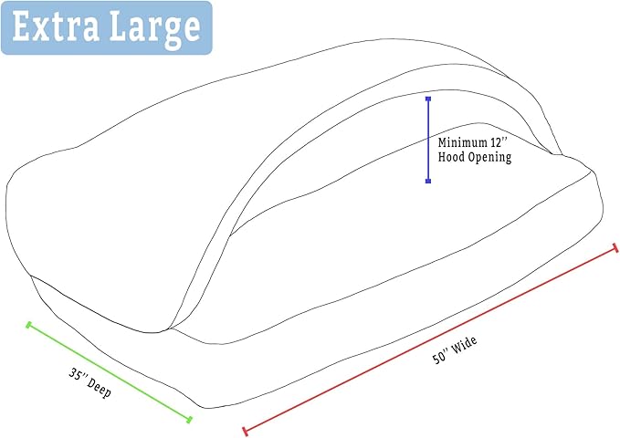 - Sizing: This dog bed measures 35" deep by 50" wide with a 4" sidewall, and about 8" total height with the hood, perfect for large sized dogs. Includes a removable plastic tube to keep the hood open