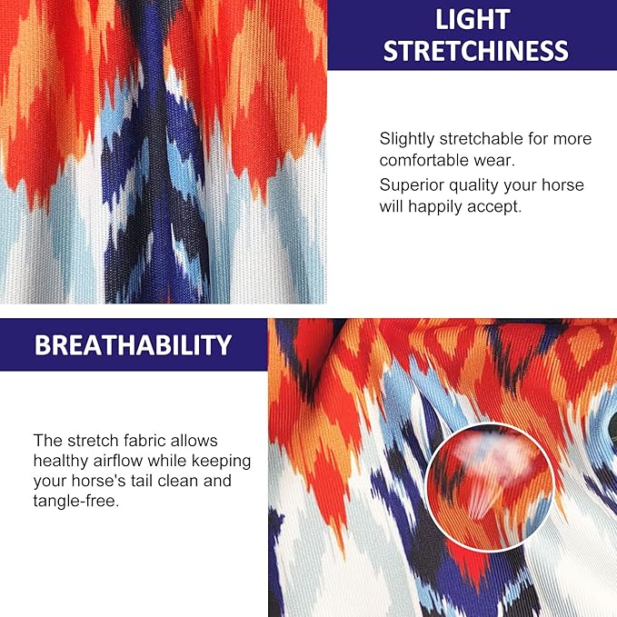 - Unique & Dynamic Pattern Range: Crafted from a smooth stretch fabric and uniquely designed with a range of vibrant patterns, this tail bag not only wears comfortably, also allows you to better tailor your horse’s overall look