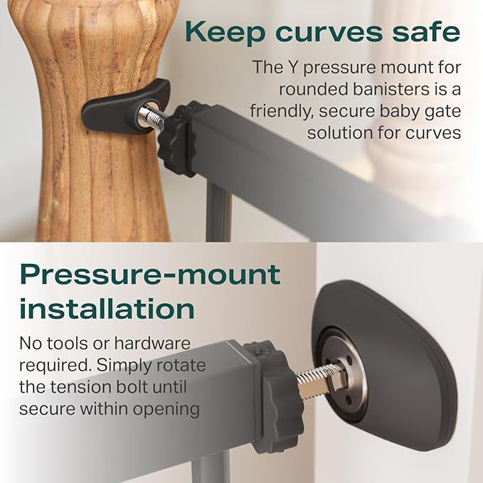 - 【Pressure-Mounted Installation 】A quick and easy DIY install, this child gate can be fit above or below stairs, in doorways, along hallways, and in open spaces; You can install it easily with no hardware or with screws for added stability and strength