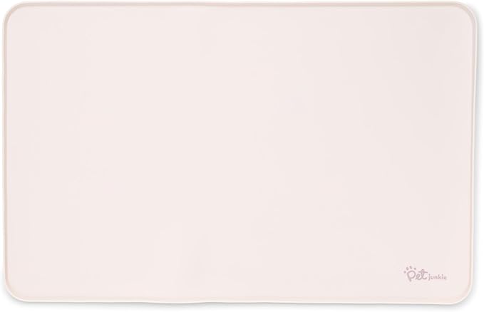 - LARGE AND SMALL PETS: 22" x 14" x 0.33" - This dog food placemat fits two Pet Junkie bowl stands or comparably sized pet dishes. Perfect size for a food mat for dogs or a cat feeding mat.