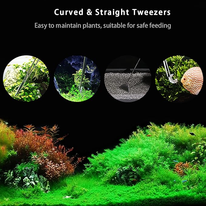 - 【Premium Stainless Steel Aquascaping Tools】This 4-in-1 Aquascaping tool is made of high-quality stainless steel material and adopted spray paint technology, not easy to rust, and is durable in long-term use. The aquarium starter kit Includes a sand spatula, straight tweezers, curved tweezers, and curved scissors. Please dry the aquascape tools with toilet paper or a towel after each use.