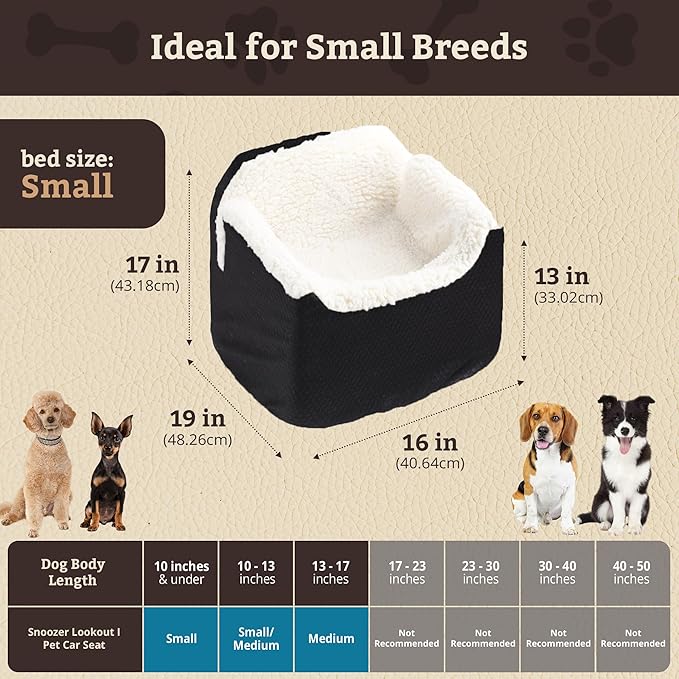 Snoozer Lookout I Car Seat - Dog Car Seats for Small Dogs, Puppy Booster Bed for Small Sized Pets up to 18 Lbs, Elevated, Washable - Size S, Black Diamond