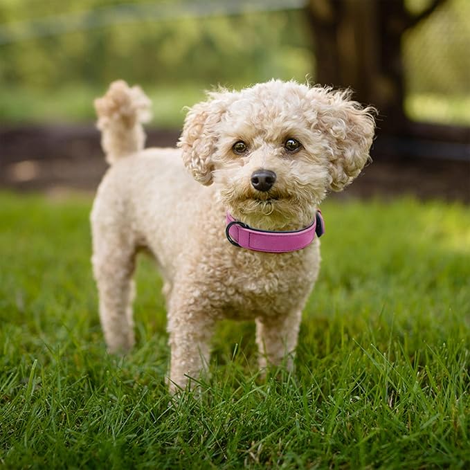 Didog Soft Padded PU Leather Dog Collar, Breathable and Adjustable Dog Collars for Medium Dogs, Comfortable for Daily Walk, Purple, L Fit Neck 13-17"(22-44 lbs)