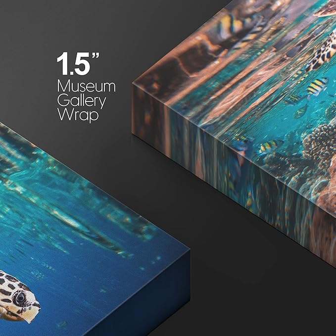 wall26 Canvas Print Wall Art Tropical Turtle Coral Reef Deep Sea Dive Nature Animals Photography Realism Rustic Scenic Landscape Wilderness Earth Colorful for Living Room, Bedroom, Office - 16"x24"