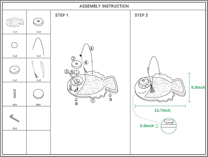 - Size & Easy to Install – The size of the fish shape cat scratcher mat: 14.17*10.24inch. Perfect for one or more cats. Easy assemble, the tools and instruction included. Less than 1 minutes to install.