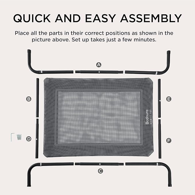 - Quick Assembly: Set up takes just a few minutes. The lightweight design of this elevated dog bed provides increased portability and makes travel simple.