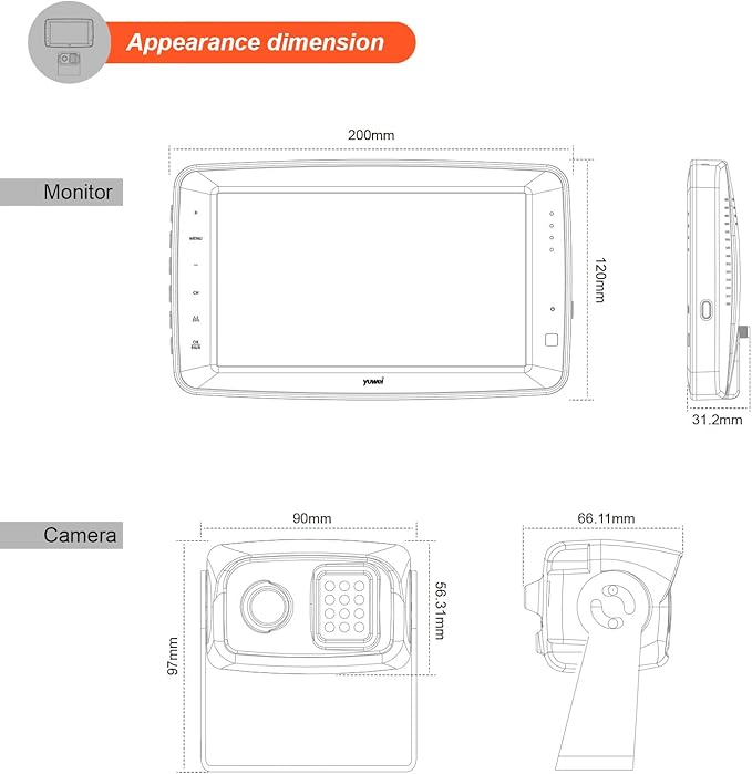 - ❆Multi function & 2 Channels>>– Intelligent switch comes with 5 functions including on/off guide lines,flip images mirrored/facing/horizontal flip/vertical flip, adjust the width/length/downward angle for guide lines. And the monitor with 2 video channels, which means you can add 2nd camera to this kit. Support full image and split images. This system included one camera, spare camera’s model is YW-0629 or search B09M6JCWC9.