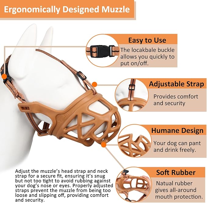 - Prevent Muzzle Slippage: An incorrect size, improper fit, or lack of muzzle training can cause the dog to remove the cage muzzle. Adjust the straps to ensure a snug fit—secure enough to keep the basket muzzle for dogs in place without causing discomfort. Check the head strap to prevent slippage. Refer to the included instructions to help your dog adjust to the dog muzzles to prevent biting