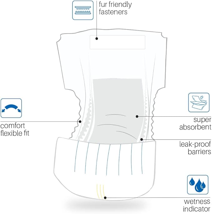 - FUR-FRIENDLY FASTENING SYSTEM: Our puppy diapers are designed with your pet's comfort in mind. The fur-friendly fastener is easily adjustable, providing a secure, irritant-free fit that accommodates even the fluffiest of friends.