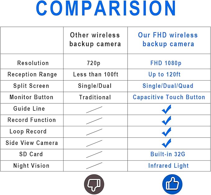 - 【Upgrade Digital Wireless Signal】 Adopt HDCVI 4th Generation Digital Signal, 100ft anti-interference no delay, applicable for vehicles within 65 feet vehicle(12-24V), give you a stable and clear monitor of road condition, be your reliable assistant. The cameras are not battery camera and need wires to get power and work.