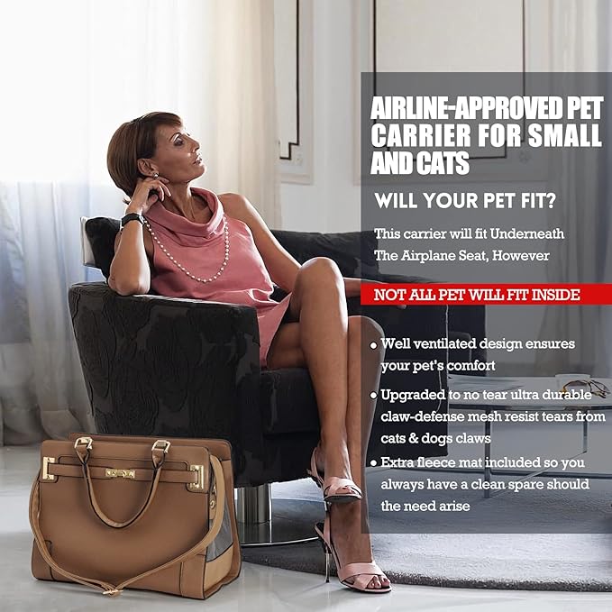 - โ[ Airline-Approved ] The portable pet carrier purse suit for all airlines,you can makes it easy to take your small cat or dog on airplanes.Perfect for travel.Conforms to under-seat dimensions of most airlines. The Best Gift For Yorkie/Chihuahua/Teacup/Puppy/kitten Lovers.This bag every dog needs.