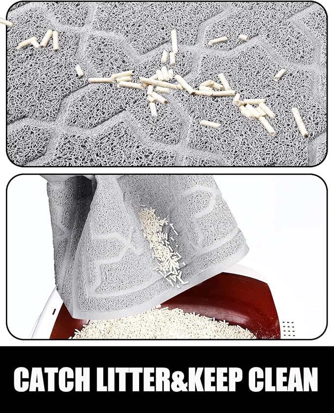 - NON-SLIP & WATERPROOF: Our cat litter mat litter trapping mat non-slip Litter boxes rug backing has a non-slip texture that holds your litter boxes in place, will not slip. Bottom layer is waterproof can keep a mess of spilled pet's water and urine on the litter pads, instead of on your floor