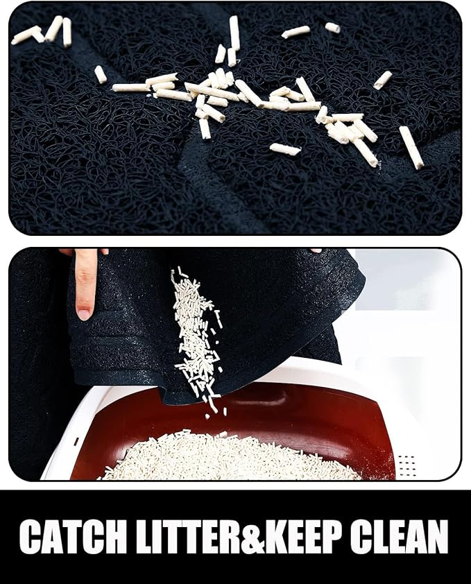 - NON-SLIP & WATERPROOF: Our cat litter mat litter trapping mat non-slip Litter boxes rug backing has a non-slip texture that holds your litter boxes in place, will not slip. Bottom layer is waterproof can keep a mess of spilled pet's water and urine on the litter pads, instead of on your floor
