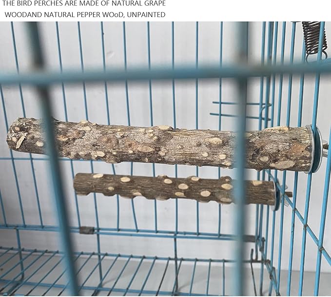 - Bird Perch Stand: a real tree branch for your parrot birds to stand, climb or play with it. Make them feel in the wild. Size: grape wood length: approx. 20 - 30cm/ 7.87 - 11.8in, diameter is approx. 1.5 - 2.5cm/ 0.6 - 0.98in, pepper wood length: approx. 20cm/ 7.87in, diameter is approx. 2 - 2.5cm/ 0.79 - 0.98in.