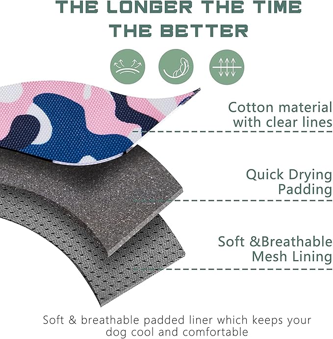 - 🐾DUARABLE & BREATHABLE MATERIAL: All Day Comfort.🐾 The heavy-duty vest made of soft cotton fabric with clear texture for the beautiful appearence. Extra durability and wear-ability, suitable for all field use. The soft padding can protect your dog's skin, while the breathable air mesh keeps your dog ventilated and comfortable. We will protect the comfort and health of the dog together with you.