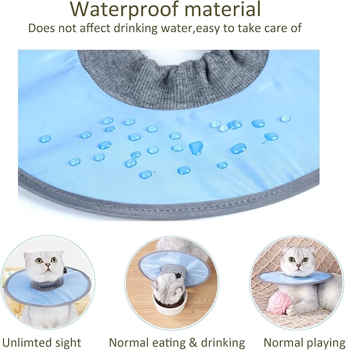 Waterproof Cat Recovery Collar, Adjustable Pet Cone Collar, Protective Cat Neck Cones to Stop Licking Wounds, Lightweight Kitten Cones After Surgery, Elizabethan E Collar for Cats, Small Dog, Puppy
