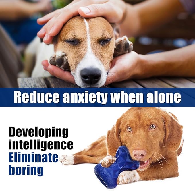 Rubber Dog Toys Treat Dispensing - Super Tough Treat Toys for Aggressive chewers Large Breed Durable Dog Toys IQ Training (Blue)