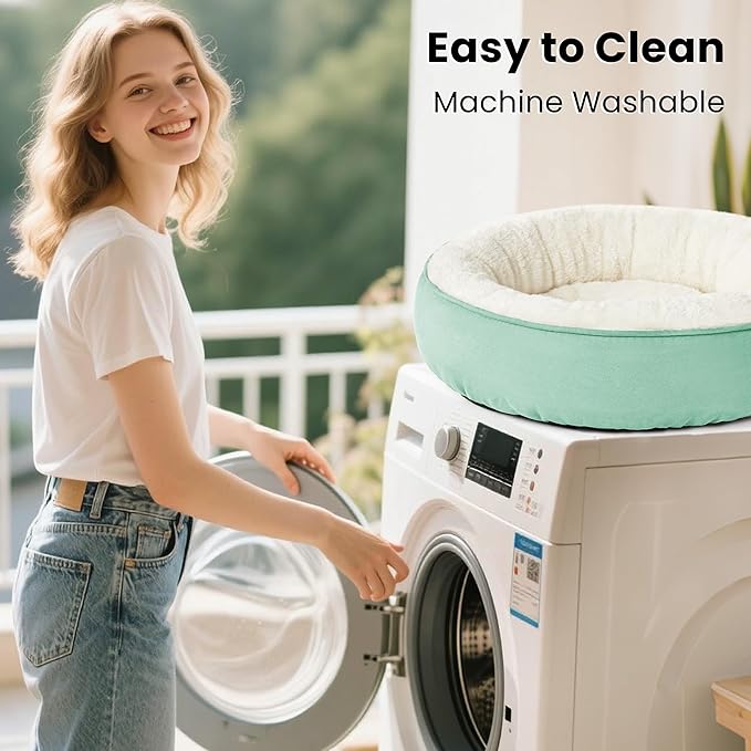 Love's cabin Round Donut Cat and Dog Cushion Bed, 25in Pet Bed for Small or Medium Dogs, Anti-Slip & Water-Resistant Bottom, Soft Durable Fabric Pet Beds, Washable Calming Cat & Dog Bed Teal