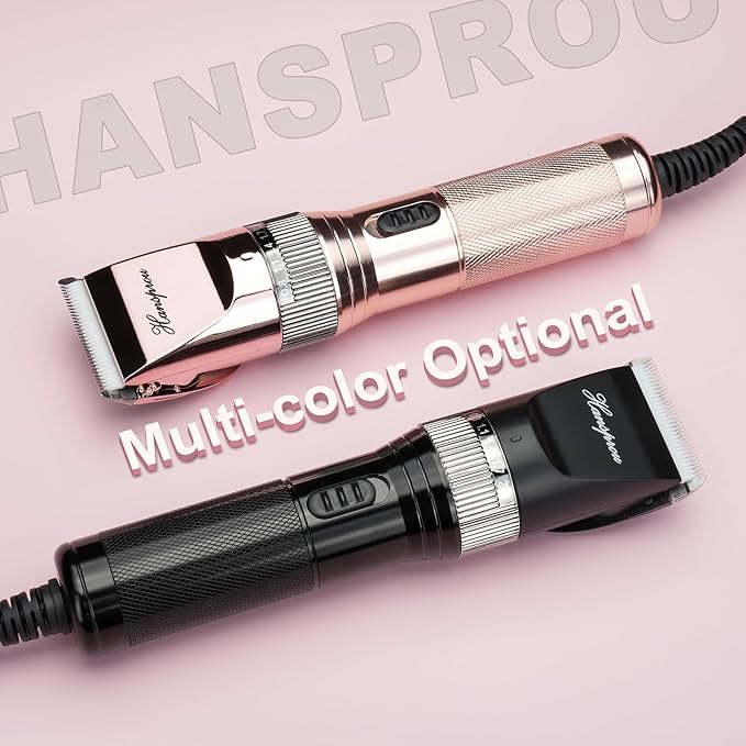 - Upgraded 36V High -Speed Strong Power Motor: Hansprou dog grooming clippers have strong power, no hair sticking, plug and use, no need to charge, to provide strong and stable power, you can use it to fast trim pet's hair and cut through smoothly.