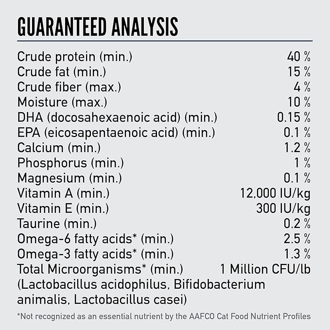 - First five ingredients are fresh*** or raw**** poultry or fish, so your cat can get a high protein cat food with the essential protein, vitamins and minerals they need
