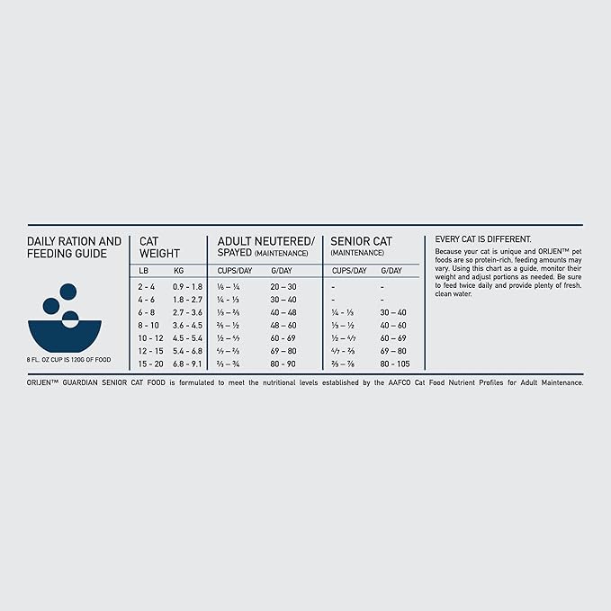- ORIJEN senior cat food kibble is tailored to support your cat's unique needs as they grow older with eight key health benefits, helping support immune support, digestion and muscle and weight maintenance