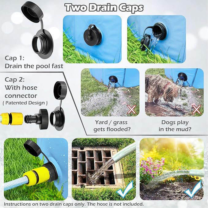 - Slip Resistant and Paws Friendly --- Inner wall and the bottom is made of extra-tough embossed plastic. Thick and non slip bottom. No slips and falls. Full size pools for puppy, small dogs, medium dogs and large dogs and kids. Please Trim your dogs' nails before using the pool.