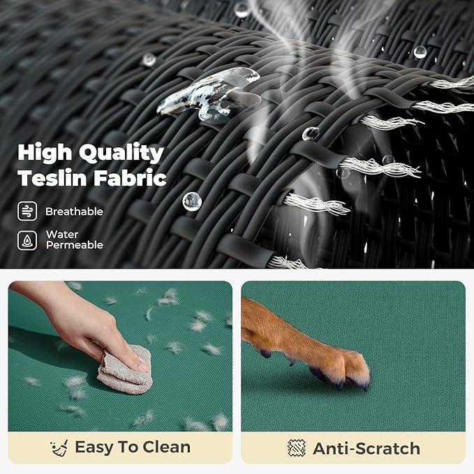 - Stay Cool Ever! Crafted of Textilene mesh fabric, the dog cot allows air to flow, keeping your pets cool while they relax in the heat. Also allow water or urine to go thru, no puddles formed. Besides, the teslin mesh features heat-resistance, sturdy, and breathability.