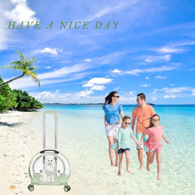 Transparent & Fully Breathable Hard cat Carrier with Rolling Wheels for Dogs, Cats, Multiple Carrying Options, Perfect for Traveling/Taking a Walk