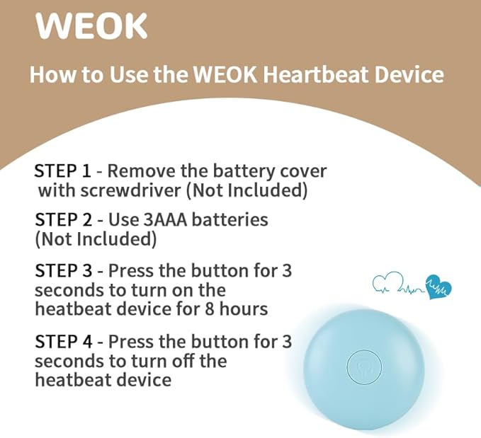 - Anxiety Relief: The heartbeat puppy toy simulates an atmosphere of accompany, it can help puppies and cats to relief the separation anxiety, loneliness, go through the tough time and adapt the new home or other complex environment. it is a good behavioral training aid toy which could comfort your puppies sleep better.💖💖Important tips for heartbeat device: Press and hold the switch long enough, it works; Press and hold the switch long enough, it stops.