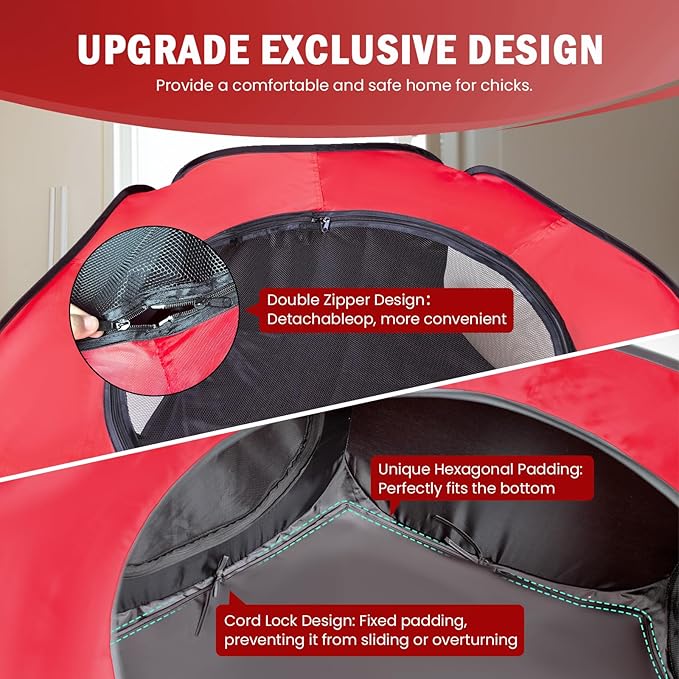 - INDOOR & OUTDOOR USE - Perfect for indoor or outdoor settings, this baby chick brooder features an advanced double-door design, three-sided mesh design, and escape-proof mesh. The warm curtains is perfect for outdoor, providing excellent cold protection. Indoors you can open the breathable mesh panels, which offer good ventilation to ensure a cool and comfortable environment. while also preventing the chicks from escaping. This playpen will keep your chicks safe, happy, and comfortable.
