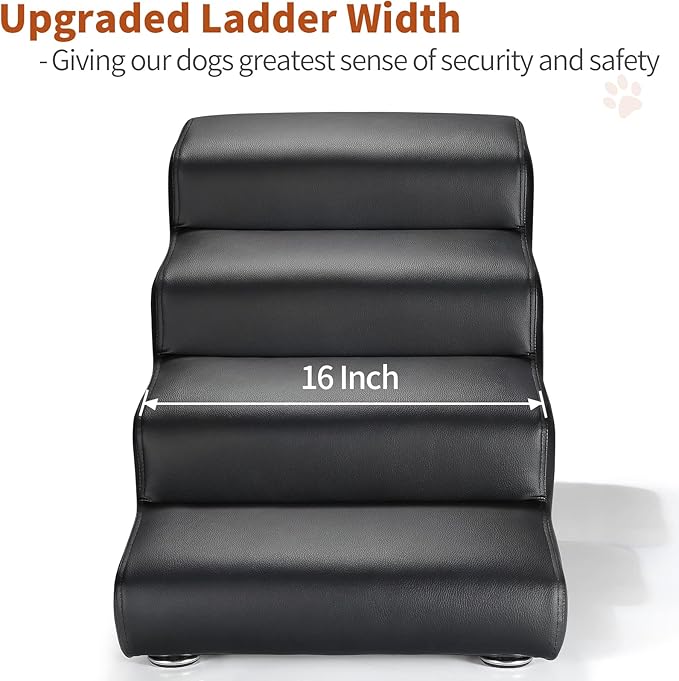 Senneny Black Faux Leather Dog Stairs, for Pets up to 150 lbs, Waterproof, Scratch Resistant Pet Steps/Stairs with High Density Foam and Detachable Wooden Legs, Black, 4 Step