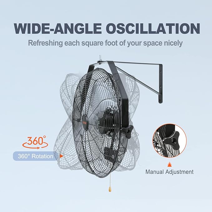 - Perfect for Outdoor & Indoor: Install our fans on the walls or posts of patios, garages, and feed pens. Not only will you enjoy cooling relief from the heat, but your pets and plants will benefit from a cooler outdoor environment. Who knows, your orchid plant might bloom again.(Please hang it on concrete or metal structures; not recommended for use on wooden walls.)