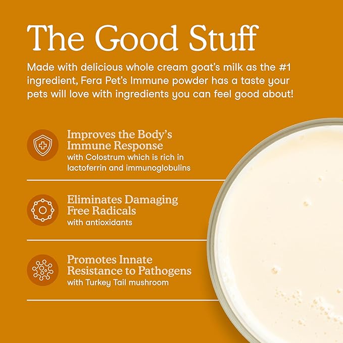 Fera Pets Immune Goat Milk for Dogs & Cats with Colostrum, Organic Turkey Tail Mushroom, & Probiotics - Improves Immune Response - for Picky Eaters - Powder - 60 TSP