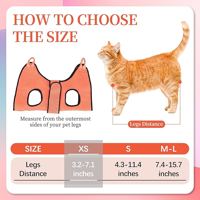 - 【Choose the Right Size】Our pet grooming hammock comes in three sizes: XS, S, and L. 𝐁𝐞𝐟𝐨𝐫𝐞 𝐩𝐮𝐫𝐜𝐡𝐚𝐬𝐢𝐧𝐠, 𝐲𝐨𝐮 𝐡𝐚𝐯𝐞 𝐭𝐨 𝐦𝐞𝐚𝐬𝐮𝐫𝐞 𝐭𝐡𝐞 𝐝𝐢𝐬𝐭𝐚𝐧𝐜𝐞 𝐛𝐞𝐭𝐰𝐞𝐞𝐧 𝐲𝐨𝐮𝐫 𝐩𝐞𝐭'𝐬 𝐟𝐫𝐨𝐧𝐭 𝐚𝐧𝐝 𝐛𝐚𝐜𝐤 𝐥𝐞𝐠𝐬. 𝐓𝐡𝐞𝐧 𝐚𝐜𝐜𝐨𝐫𝐝𝐢𝐧𝐠 𝐭𝐨 𝐭𝐡𝐞 𝐬𝐢𝐳𝐞 𝐜𝐡𝐚𝐫𝐭, 𝐲𝐨𝐮 𝐜𝐚𝐧 𝐜𝐡𝐨𝐨𝐬𝐞 𝐭𝐡𝐞 𝐦𝐨𝐬𝐭 𝐬𝐮𝐢𝐭𝐚𝐛𝐥𝐞 𝐡𝐚𝐦𝐦𝐨𝐜𝐤 𝐟𝐨𝐫 𝐲𝐨𝐮𝐫 𝐩𝐞𝐭.