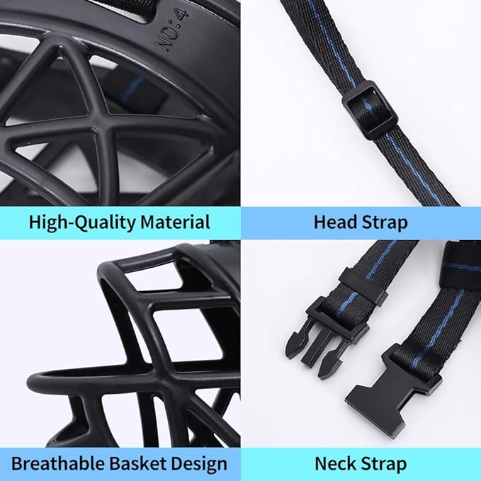 - Adjustable fit: The upgraded dog breathable basket muzzle allows your beloved dog to drink, eat and pant, which can connect collar. Moreover, adjustable nylon neck strap allows you to quickly adjust the fit of your dog.