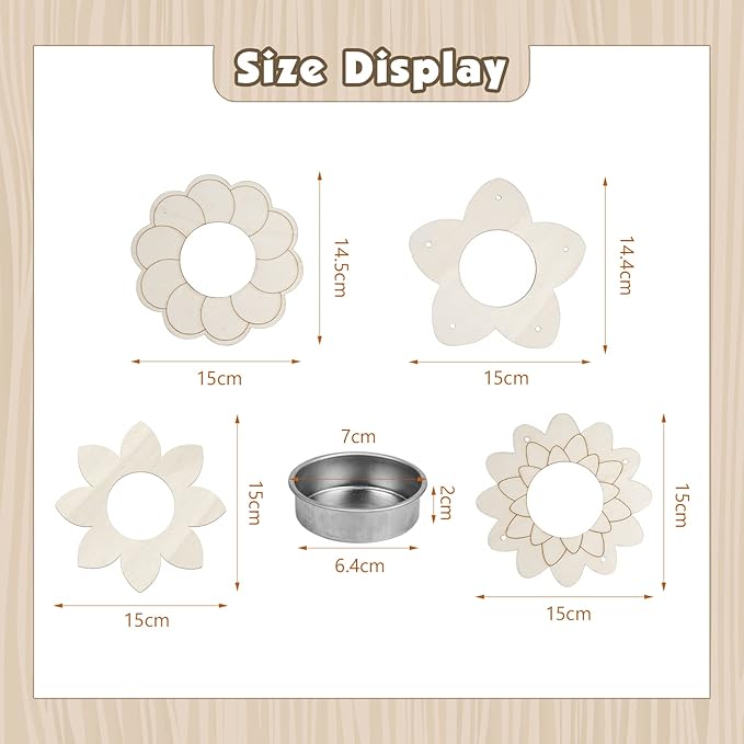- Craft Project For Kids: Design and color the flower-shaped wood chips can stimulate children's creativity and hands-on ability, and improve children's hand-eye coordination. The process of parents accompanying their children to do handicrafts can also enhance the parent-child relationship.By making bird feeders, children can learn about animals and nature.