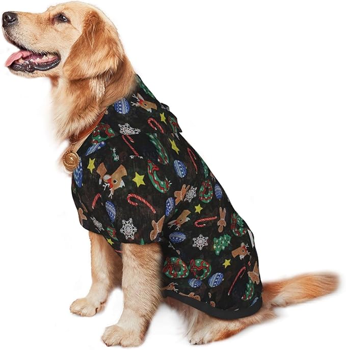 Xmas Tree Reindeer Ginger Cookie Hoodie,Christmas Cosplay Dog Clothes with Pocket and Hat Winter Clothes Sweaters Medium